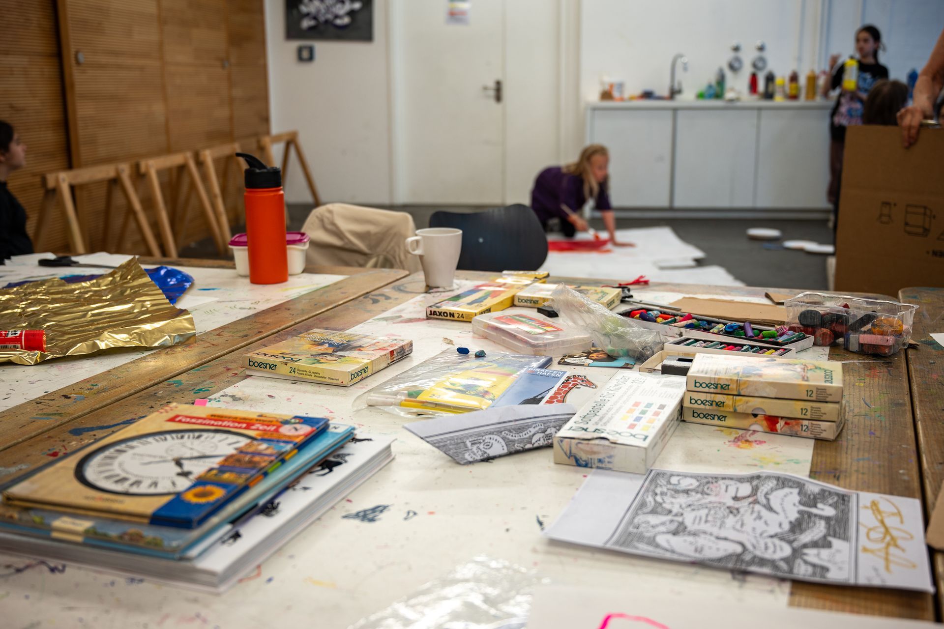 Doch zuerst bekommen wir eine Führung durch das Jugendkunsthaus, welches von einer Hamburger Unternehmerfamilie gestiftet wurde. Dabei erfahren wir, was neben den Kursen für die Jugendlichen noch alles in der Esche stattfindet: Sprachkurse für Geflüchtete z.B., Musikunterricht,