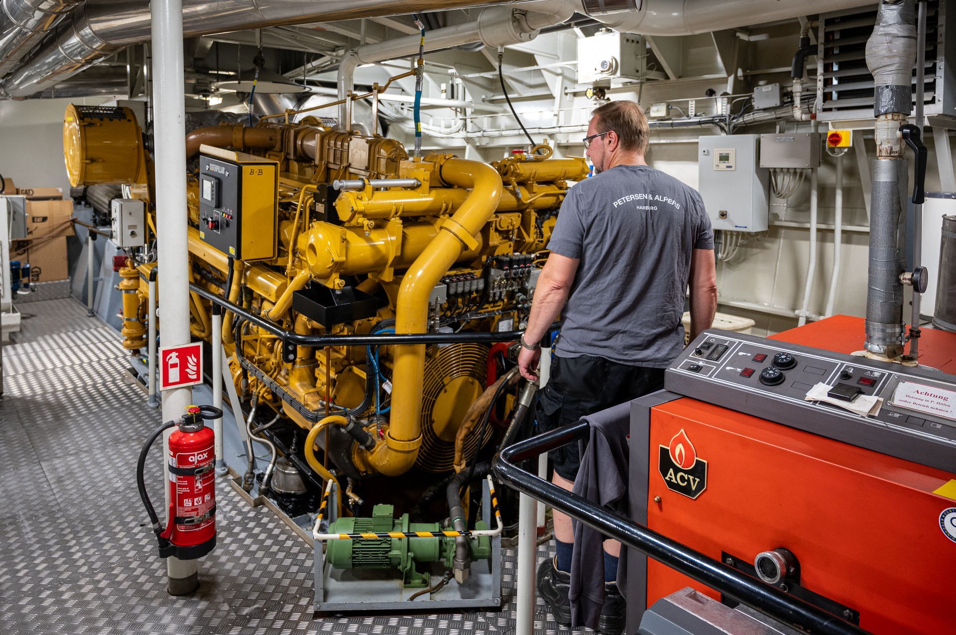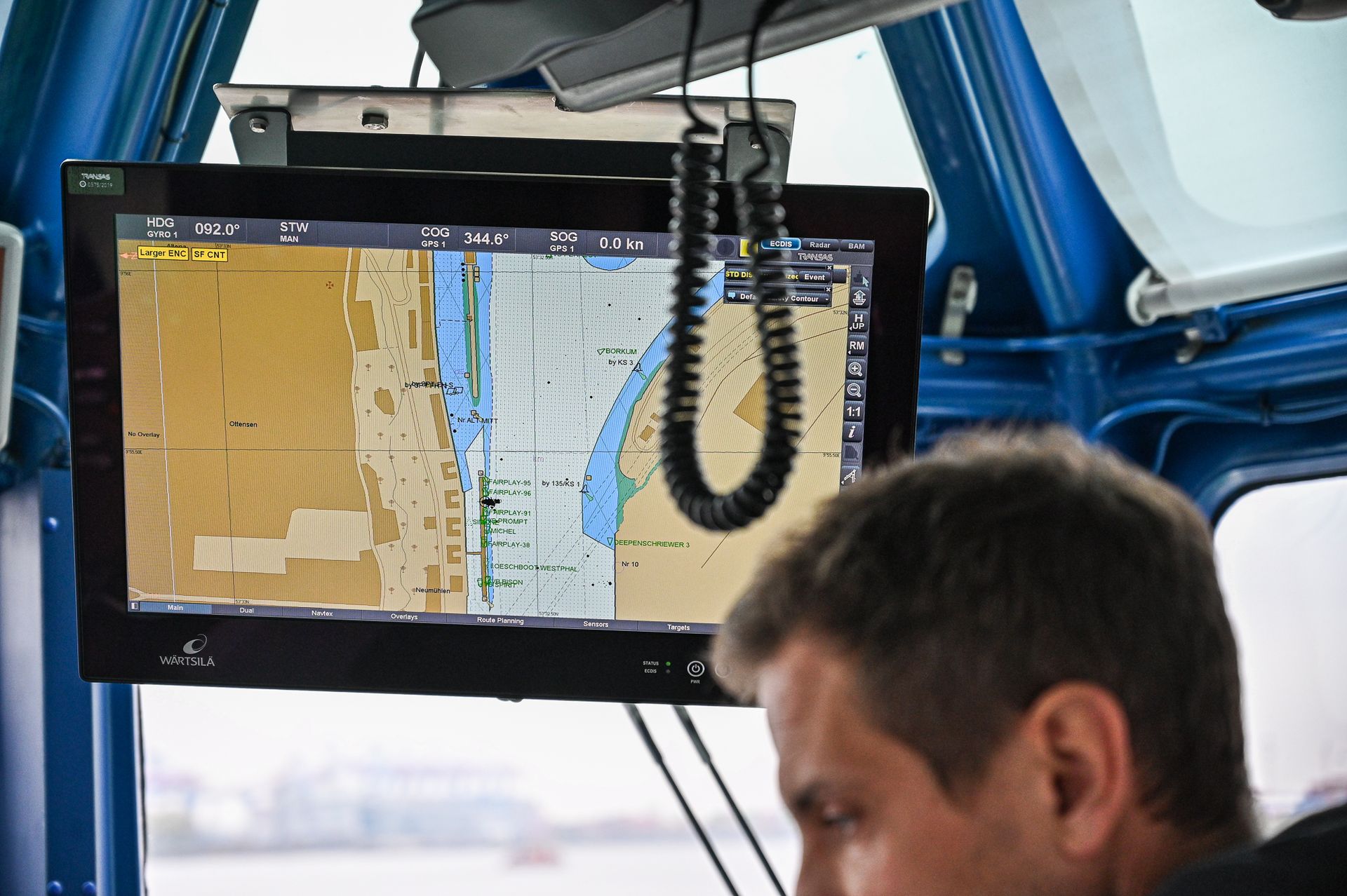 Hans Peter Ebert viel über Ausbildung und theoretische Anforderungen der Seefahrt gehört und gelernt haben, wird es heute für uns Landratten ernst! Die Crew hat einen Auftrag: im Hansaport soll ein Frachter vom Liegeplatz in die Elbe geschleppt werden. Weil das Hafenbecken am Anlegeplatz zu eng ist, kann der Frachter nicht alleine wenden. Wir werden von einem Schlepper der Fairplay Group begleitet, da ein Schlepper alleine das große Schiff nicht drehen kann.